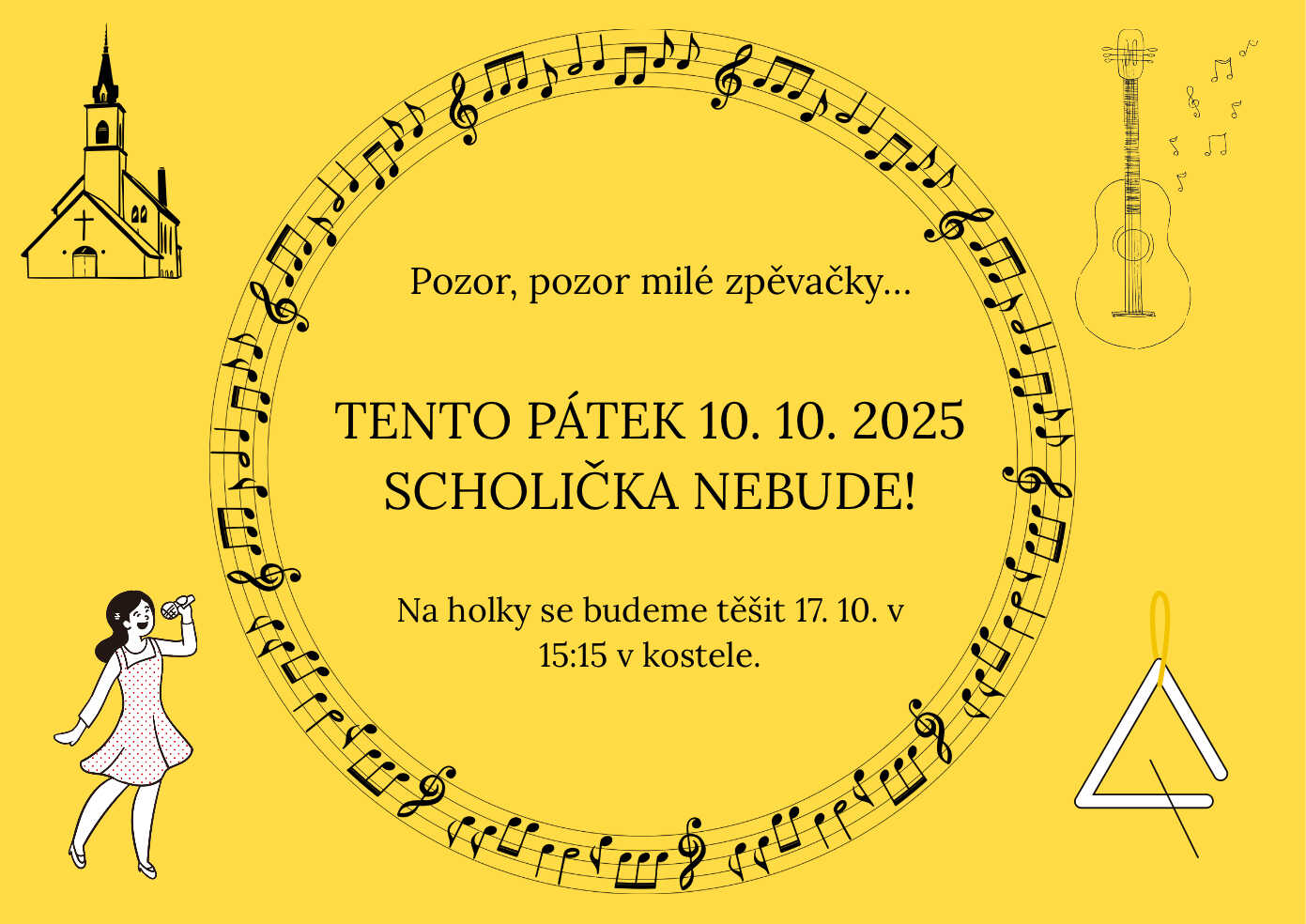 Pozor, pozor naše zpěvačky…Uvidíme se až příští týden! Takže 17. 10. 2025 se na vás budeme těšit v kostele v 15:15 hod. ... pokračovat ve čtení