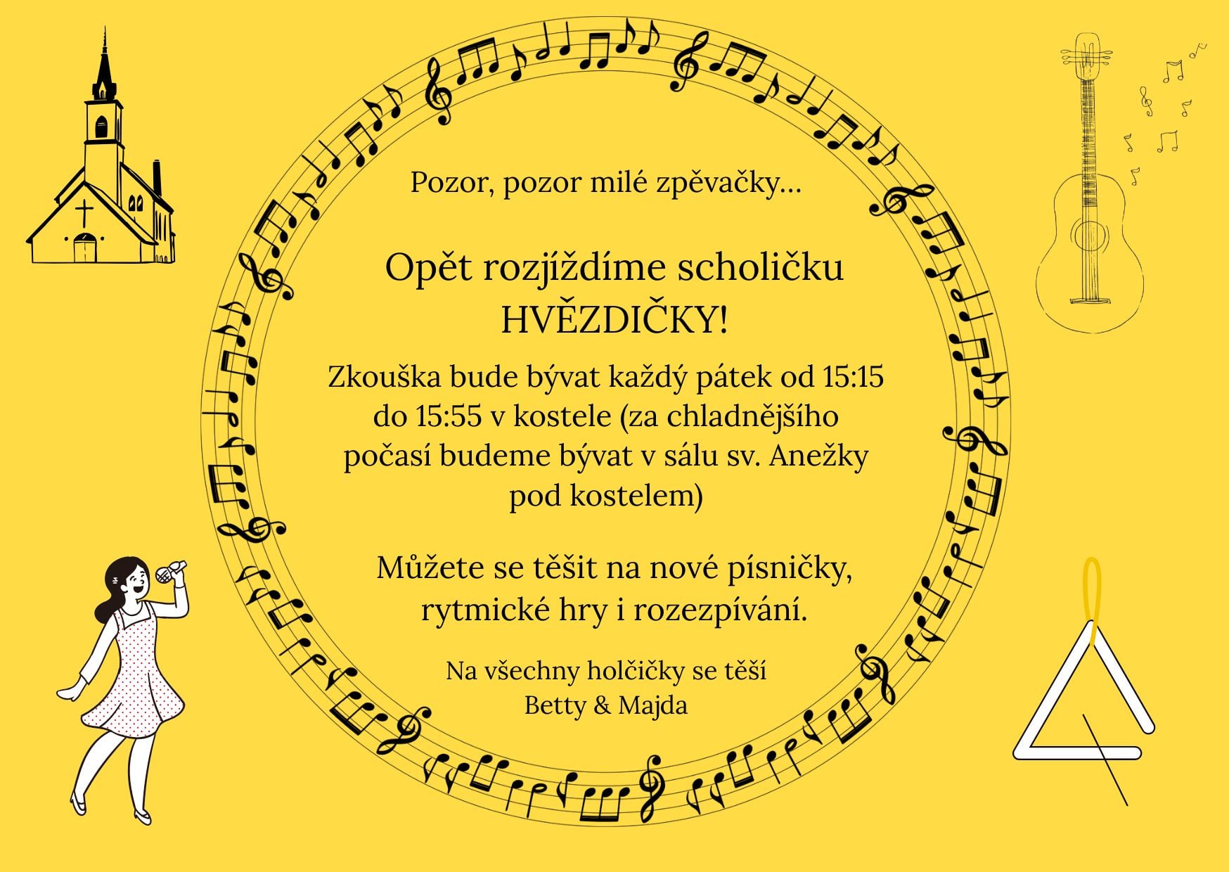 Pozor, pozor milé Hvězdičky! Začínáme opět s hudebním doprovodem při mších svatých. Budeme se těšit na všechny holčičky od 1. třídy ... pokračovat ve čtení