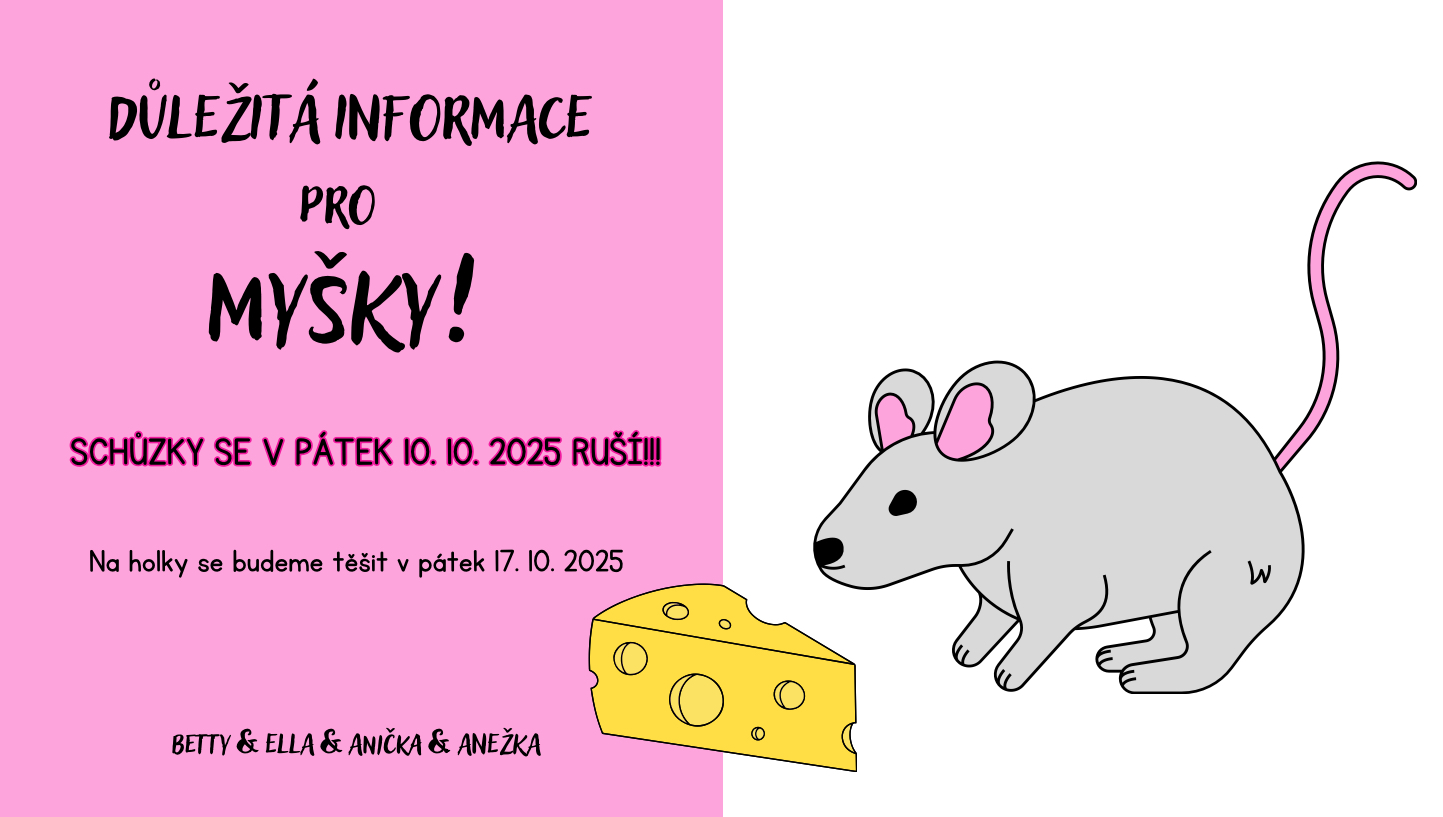 Kvůli víkendové akci se výjimečně ruší Myší schůzky! ... pokračovat ve čtení