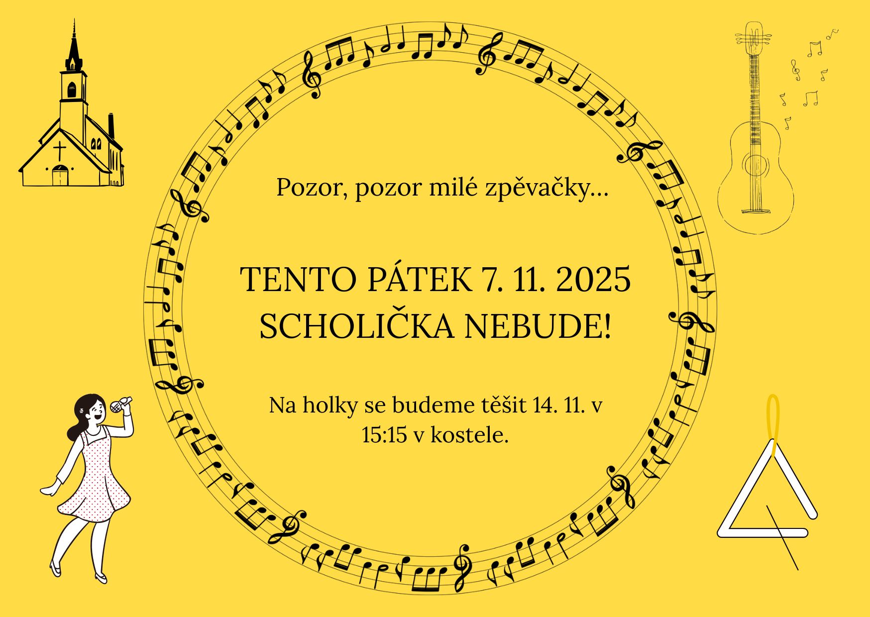 Naše milé zpěvačky, je nám to líto, ale výjimečně rušíme scholičku z důvodu nemoci. Budeme se na vás těšit 14. 11. 2025 v 15:15 v kostele! ... pokračovat ve čtení