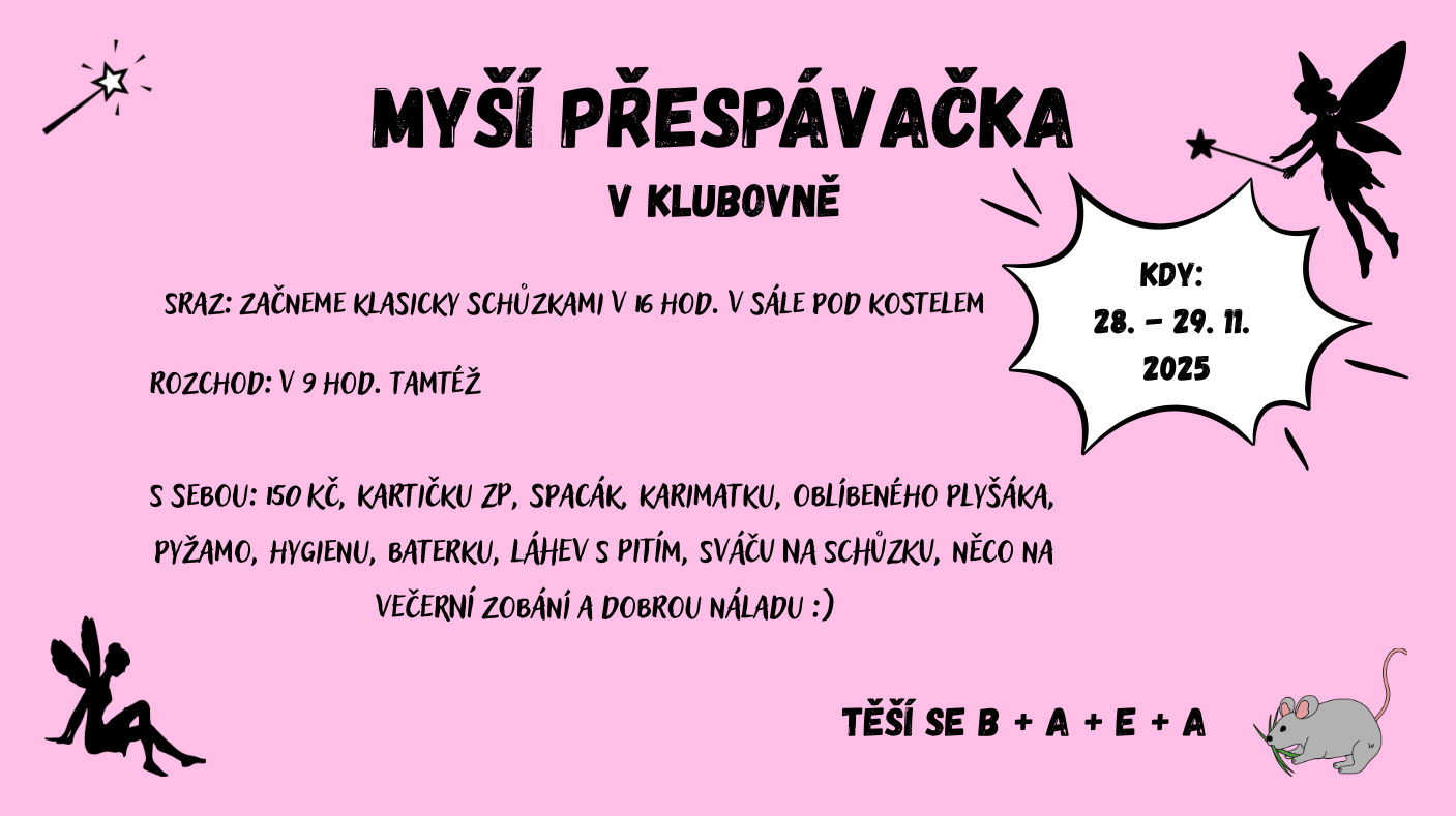 Naše milé Myšky, budeme se na vás těšit 28. 11.! Užijeme si večer plný her, zábavy a společných zážitků. A možná nás čeká i malé překvapení… ... pokračovat ve čtení